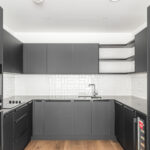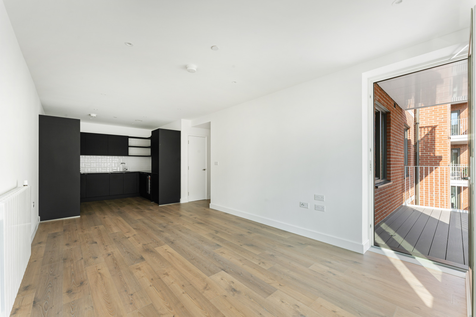 The property features a bright open-plan living and dining area with floor-to-ceiling windows and access to a private balcony, creating an ideal space for both relaxing and entertaining. The contemporary kitchen is fully fitted with integrated appliances and modern cabinetry.