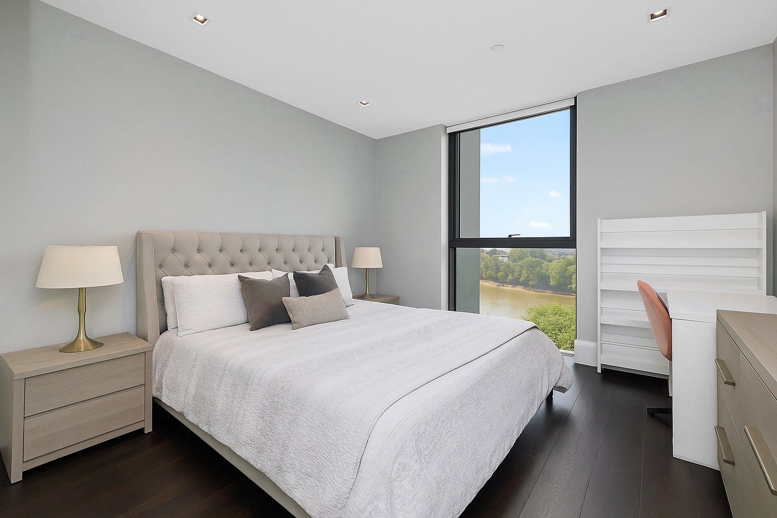 Presenting a rare opportunity to acquire a beautifully appointed two-bedroom, two-bathroom apartment on the sixth floor of the iconic Merano Residences. Offering approximately 1,164 square feet of exquisitely designed living space, this luxurious home combines refined contemporary finishes with uninterrupted views across the River Thames and some of London’s most cherished landmarks.
