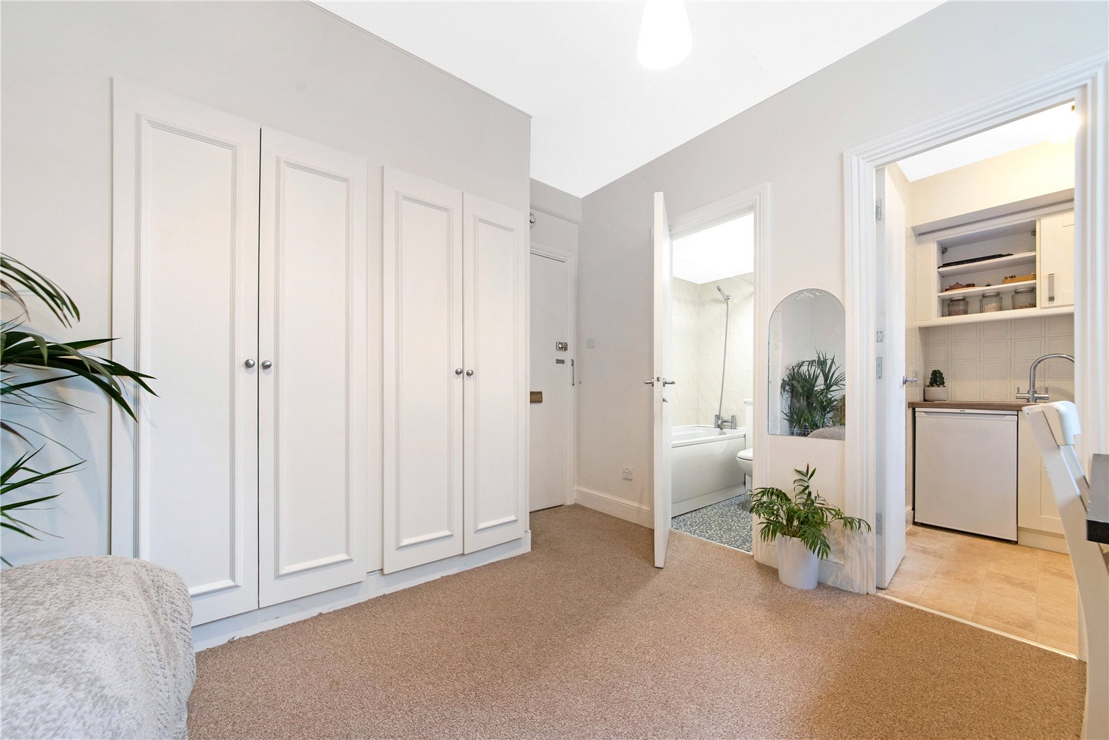 Bright and sunny studio apartment set on the 7th floor of a large purpose built development. This property benefits from concierge service and lift access. As well as comprising of compact living area, built-in wardrobes, separate fully fitted kitchen, and bathroom.