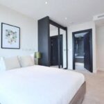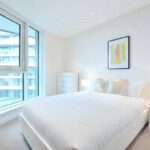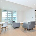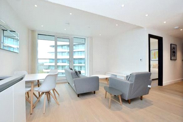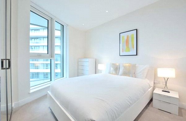 High quality, 9th floor, 2 double bedroom, 2 bathroom apartment in Sophora House, with balcony. The Vista development benefits from 24/7 concierge, lift access, residents' gym and pool, secure bike storage and access to communal gardens.
